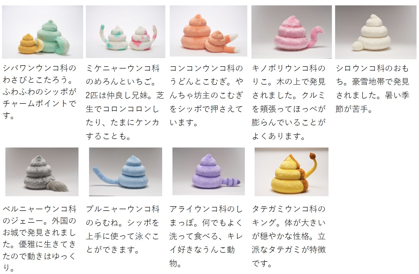 - 「うんこ動物」はカラフルで個性的な12種類!