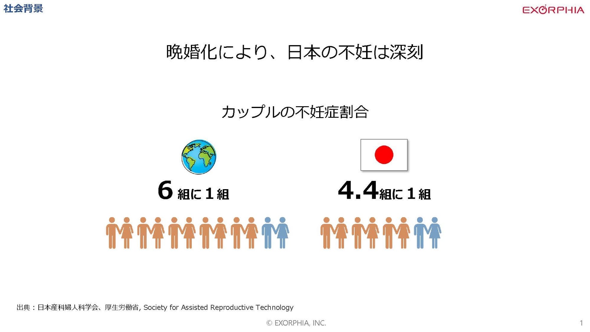 日本では晩婚化の進行に伴い、不妊に悩むカップルが増加しています。現在、カップルの4.4組に1組が不妊症に該当するとされ、この問題は社会的にも深刻な課題となっています。