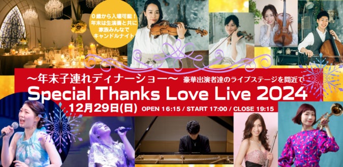 12/29(日)開催【乳幼児OK☆家族向け年末ディナーショー】生演奏に歌と盛り沢山、豪華フレンチコースディナー付スペシャル生演奏コンサート『Special Thanks Love Live2024』