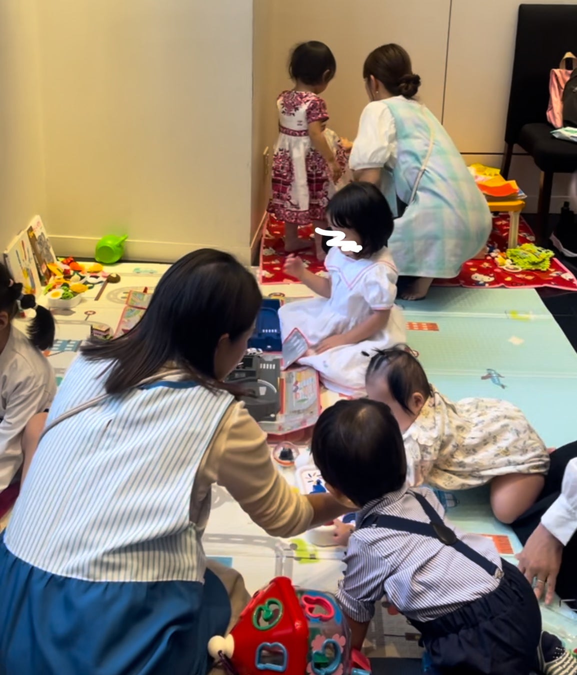 ベビーシッターサービスではないので、オムツ替えや飲食サポートなどは行っておりません。保護者の方1名は必ず一緒にキッズスペースにおいでください。先生たちがお子様の遊び相手を致します。