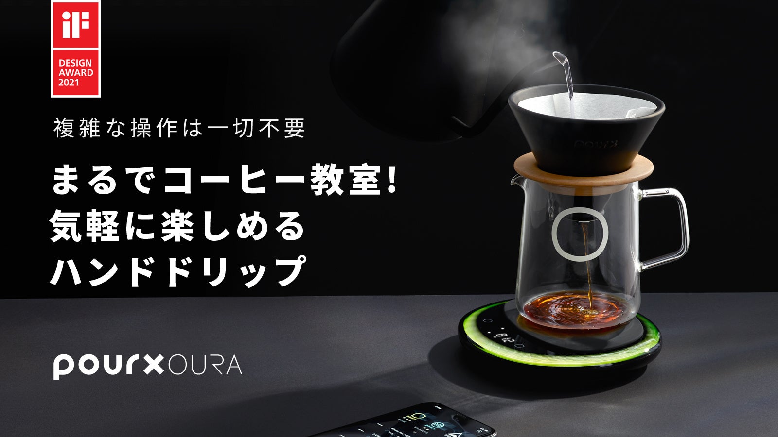 面倒な操作は一切不要!音と光に従うだけのハンドドリップガイド「POURX OURA(ポアエックス オーラ)」がMakuakeにて予約販売開始。