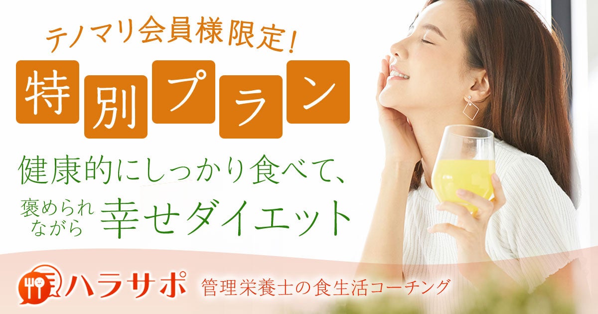 これまでテノマリは、女性の婚活を応援する為に、女性活躍応援プランを準備したり、自分磨きセミナーを実施したり、女性のお客様に寄り添う丁寧なカウンセリングを実施してきました。ハラサポは、このような特徴を持つテノマリがさらに他社とは異なる方法で女性会員の活動を応援できるように、管理栄養士によるオンライン食事指導サービス「ハラサポ」をテノマリ会員に提供開始しました。