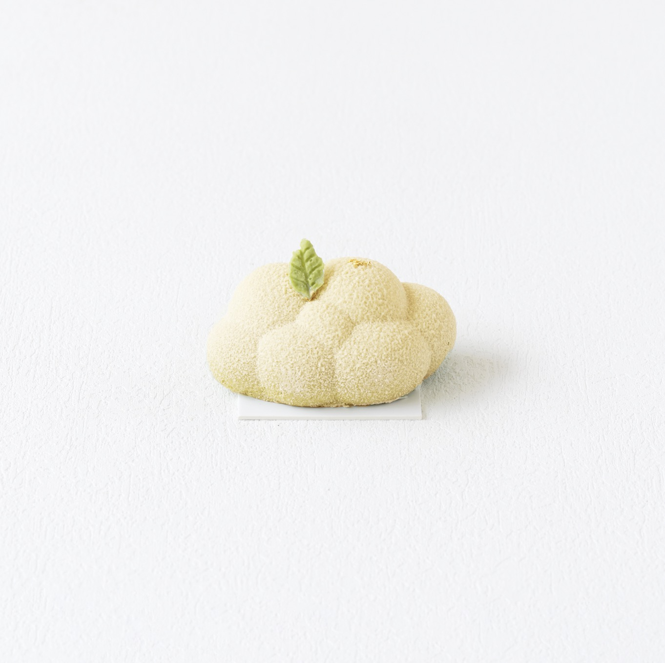 宇治金時を思い出させる雲ノムースのしっかりとした食感から一転し、ゆずの柔らかさで包まれる一品です。中を切り開くときれいな柚子色で混じりけのないムースが見られ、なめらかな舌触りは、雲の上に寝転がっているよう。最後にはケーキと真ん中の柚子を味わい、ほどよい甘さと余韻の残る香りは、春の午後に窓から差し込む日差しの優しさを感じさせます。