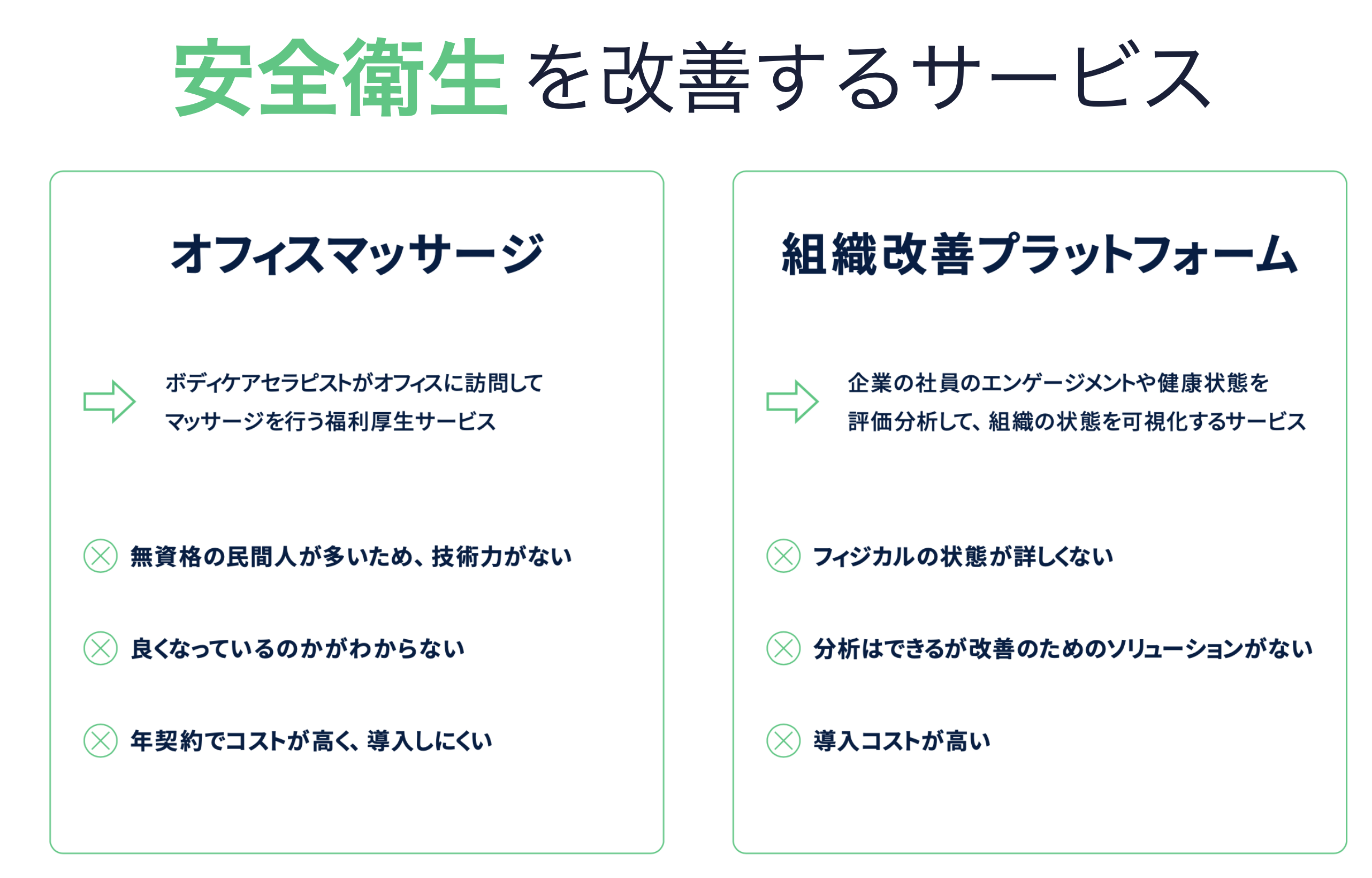 高品質の健康改善サービスをシンプルでリーズナブルな形で提供して、