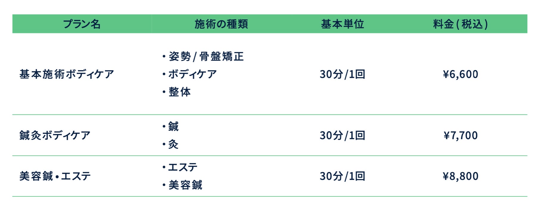 また、社員様が施術をご予約し、施術を行うと下記の料金が加算される仕組みで、無駄なく利用できます。