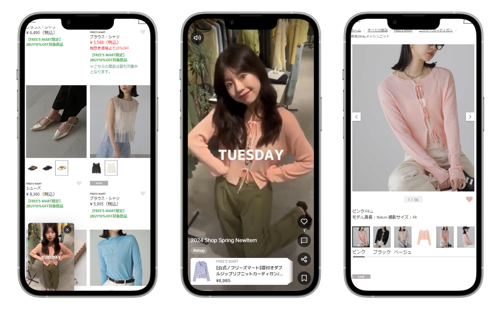 株式会社TSIホールディングス(本社:東京都港区、代表取締役:下地 毅)のファッションブランド「FREE'S MART」のECサイトで、Shopliveショート動画をKARTE接客アクションに使用したところ、従来の静止画バナーに比べて以下のような成果を得ることができました。