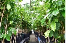 澤井珈琲はまず寒さ対策のために栽培用ビニールハウスを4棟建て、その中で苗木の生育を開始。2万3,000本の冬の厳しい寒さ対策としてビニールシートを二重にして加湿器をつけるなどしましたが、寒さ以上に困難を極めたのは真夏の暑さでした。ビニールハウスの高温の中での作業や管理は厳しく、最初の一年が最も苦労しました。手探りでの栽培に3千本近くが枯れてしまったものの、試行錯誤の末、現在は2万本の生育に成功しており、コーヒーの実も収穫できるようになりました。