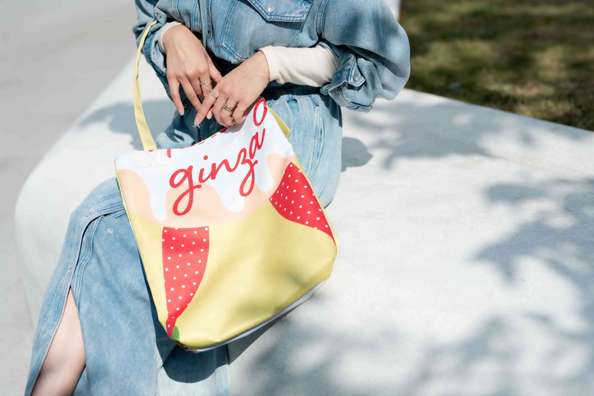 吾妻(東)は江戸時代で、京都から見た「江戸」のことを指します。 西洋の文化が浸透してきた江戸時代、西洋の鞄に憧れを抱いた江戸の庶民が、当時主流だった風呂敷や手ぬぐいを試行錯誤して縫い合わせ、鞄代わりとしたのがあずま袋の始まりとされています。 「伝統と革新」が交差する街、銀座。銀座で作るアップサイクルバッグとして、あずま袋はとても高い親和性を感じました。