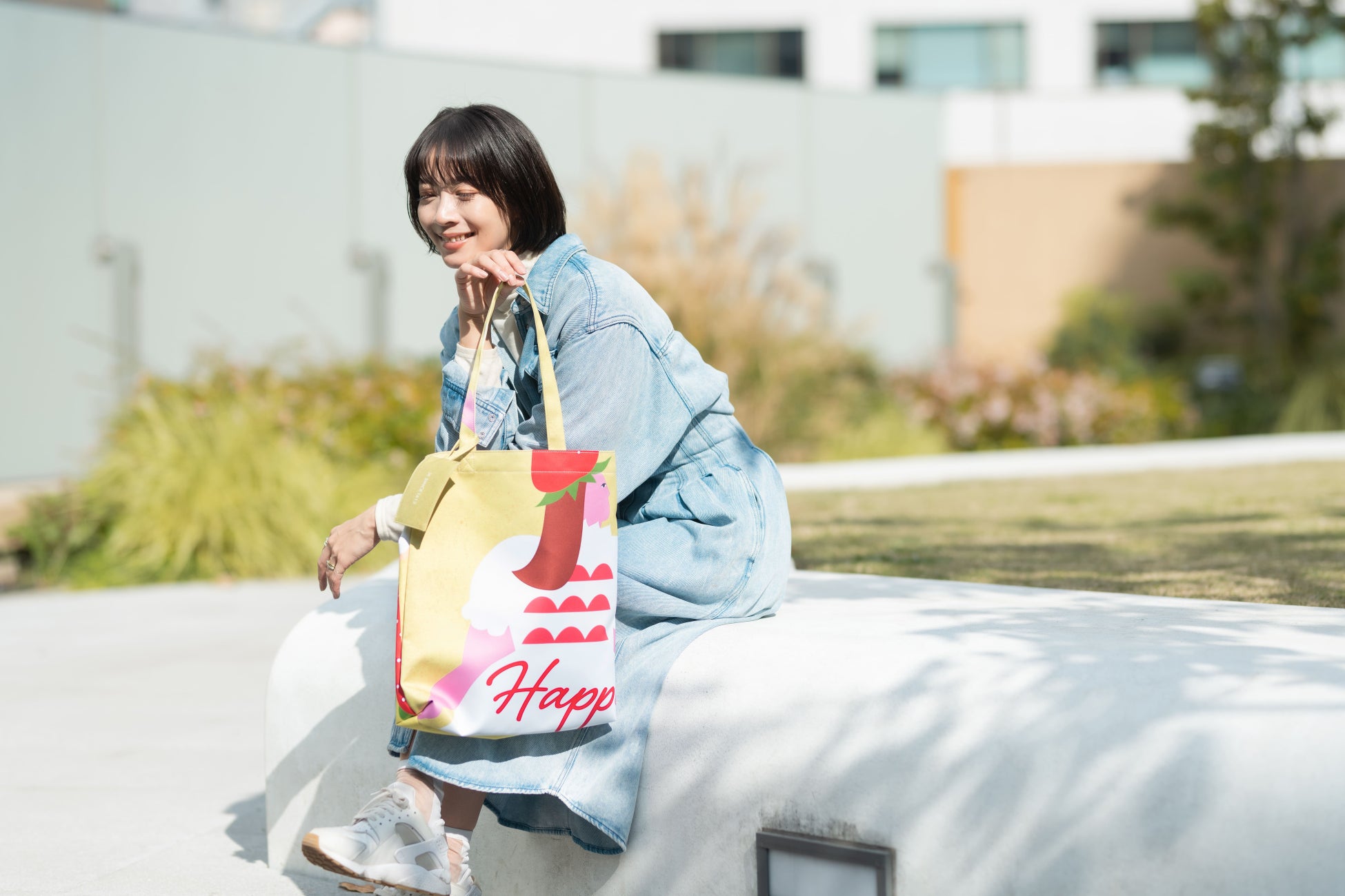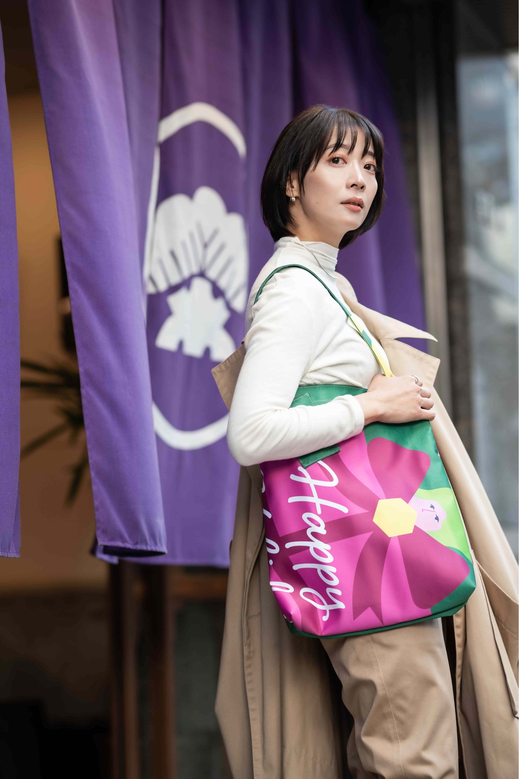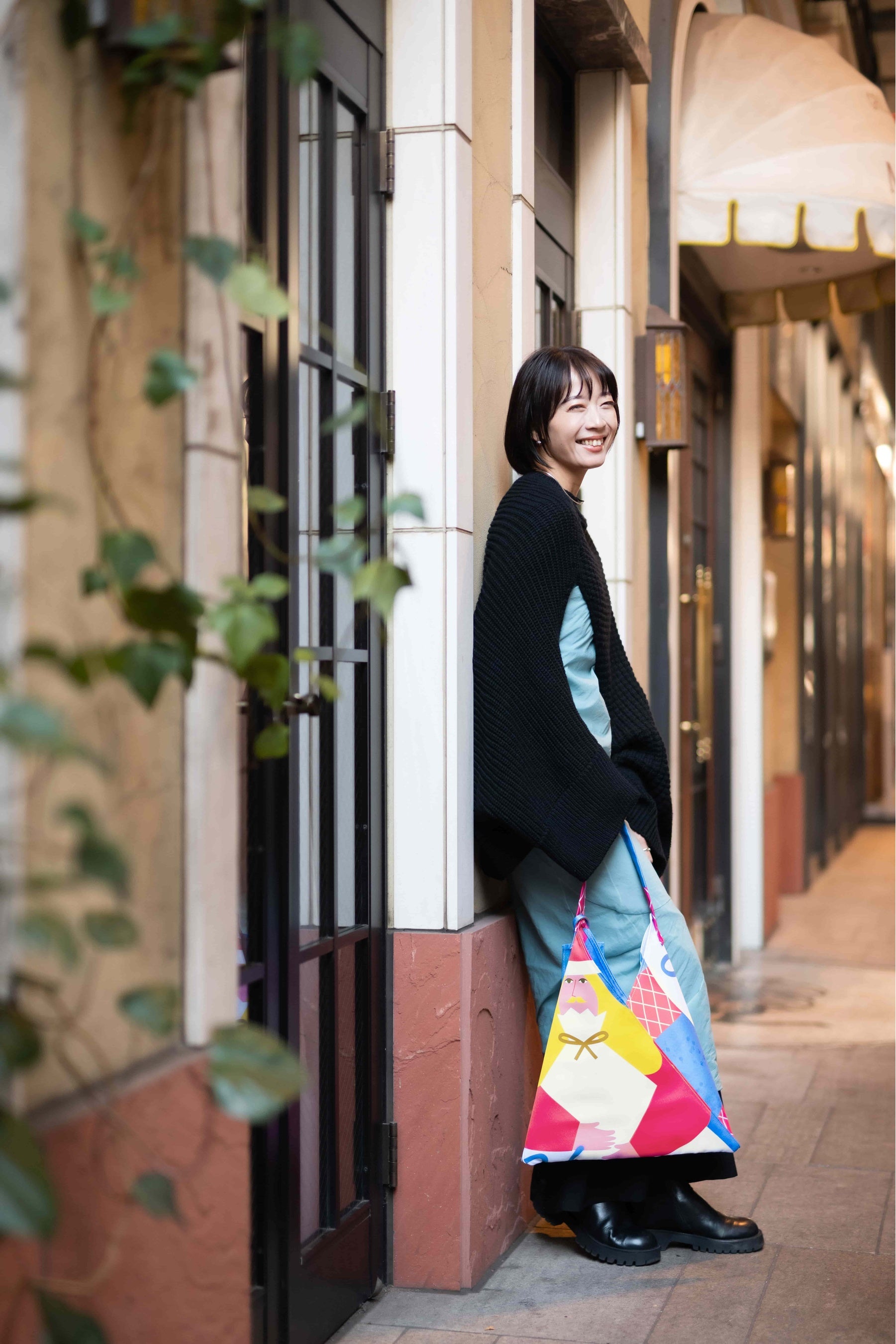 素敵なデザインを普段の生活で楽しんでもらいたい。そう考えた時に、アップサイクルするカタチは 「日常使いできるバッグ」に自然と決まりました。 屋外使用の前提で製造された街頭フラッグは、とても頑丈な素材でその上、軽量のためバッグの素材としても最適でした。 また、両面印刷の貼り合わせ生地のためバッグ内側も可愛いデザインがチラリと見え隠れします。