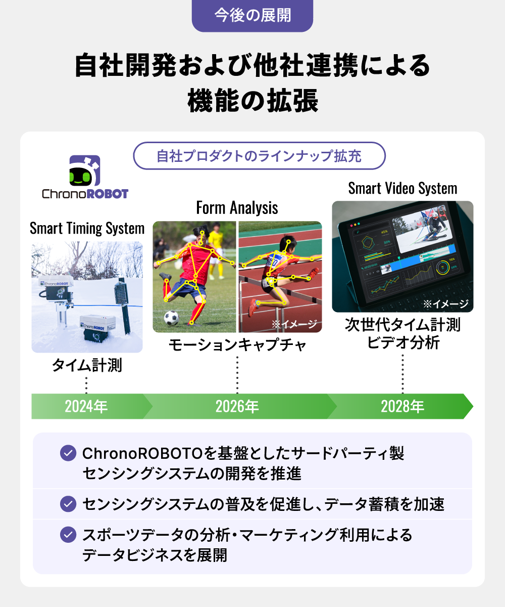 既にタイム計測システム「ChronoROBOT:Smart Timing System」は各地でデモおよびテストを実施しており、プロトタイプ版は国内、米国、欧州への出荷実績があります。この夏、正式リリース予定です。