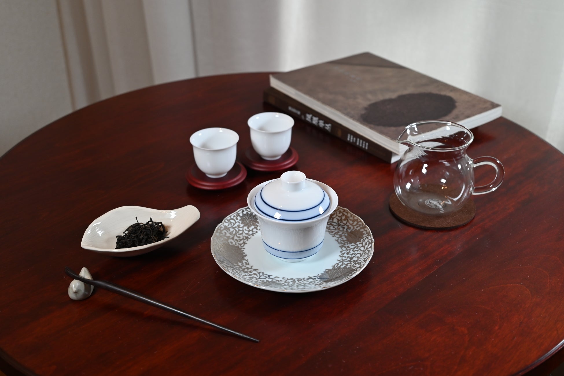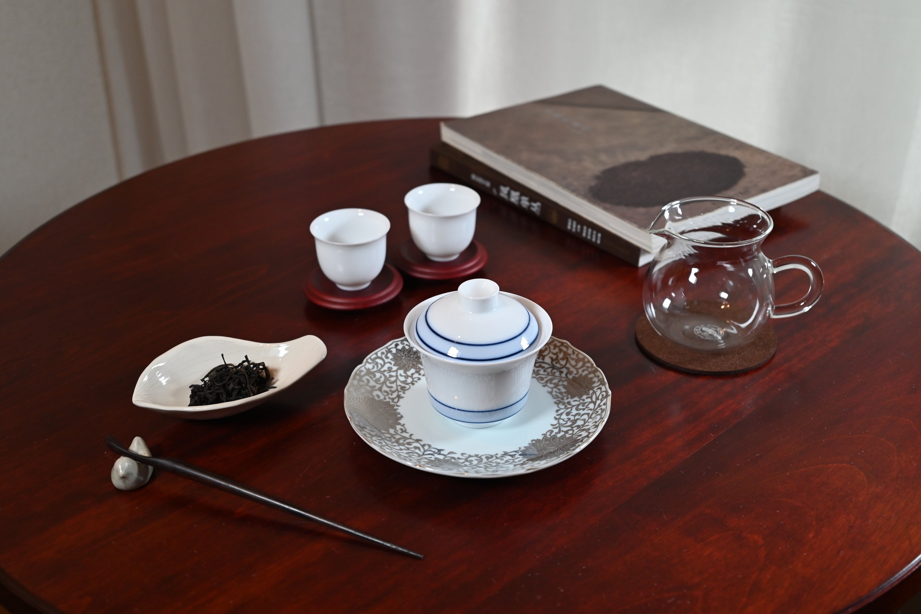 片付けなどの要素を軽減し日常の喫茶習慣の向上を図りたい、そんな想いから簡単に「淹れる」「使う」「かたづける」の3要素を満たす合理的な茶器を選びました。「蓋碗」は中国茶でお急須のように使われる茶器ですが日本の煎茶道でも「すすり茶碗」として使われてきました。茶殻をすてるのもとても簡単です。茶種を選ばないので蓋碗が一つあればどんなお茶でも美味しく淹れることができます。