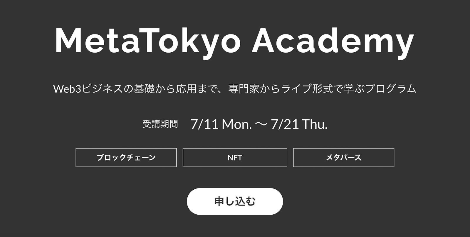 Web3ビジネスの基礎から応用まで、専門家からライブ形式で学ぶことのできるプログラム「MetaTokyo Academy」本日より受付開始