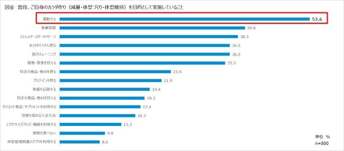 調査対象:現在カラダ作り(ダイエット、トレーニング、運動など)をしている全国の20-59歳の男女800名(性年代別で各100名を均等回収)
