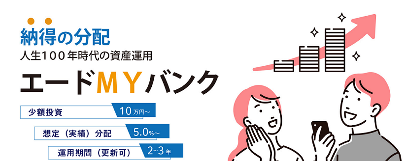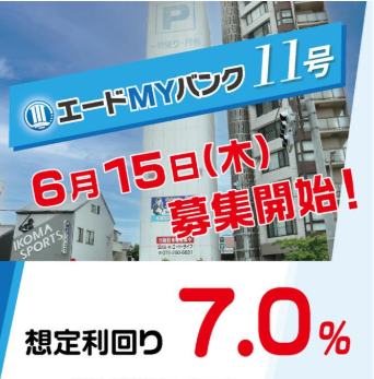- ユーザー(会員)登録者優先案内・・・「エードMYバンク11号」のお申込みができなかった場合、「エードMYバンク12号」(7月中旬募集予定)に優先してご紹介