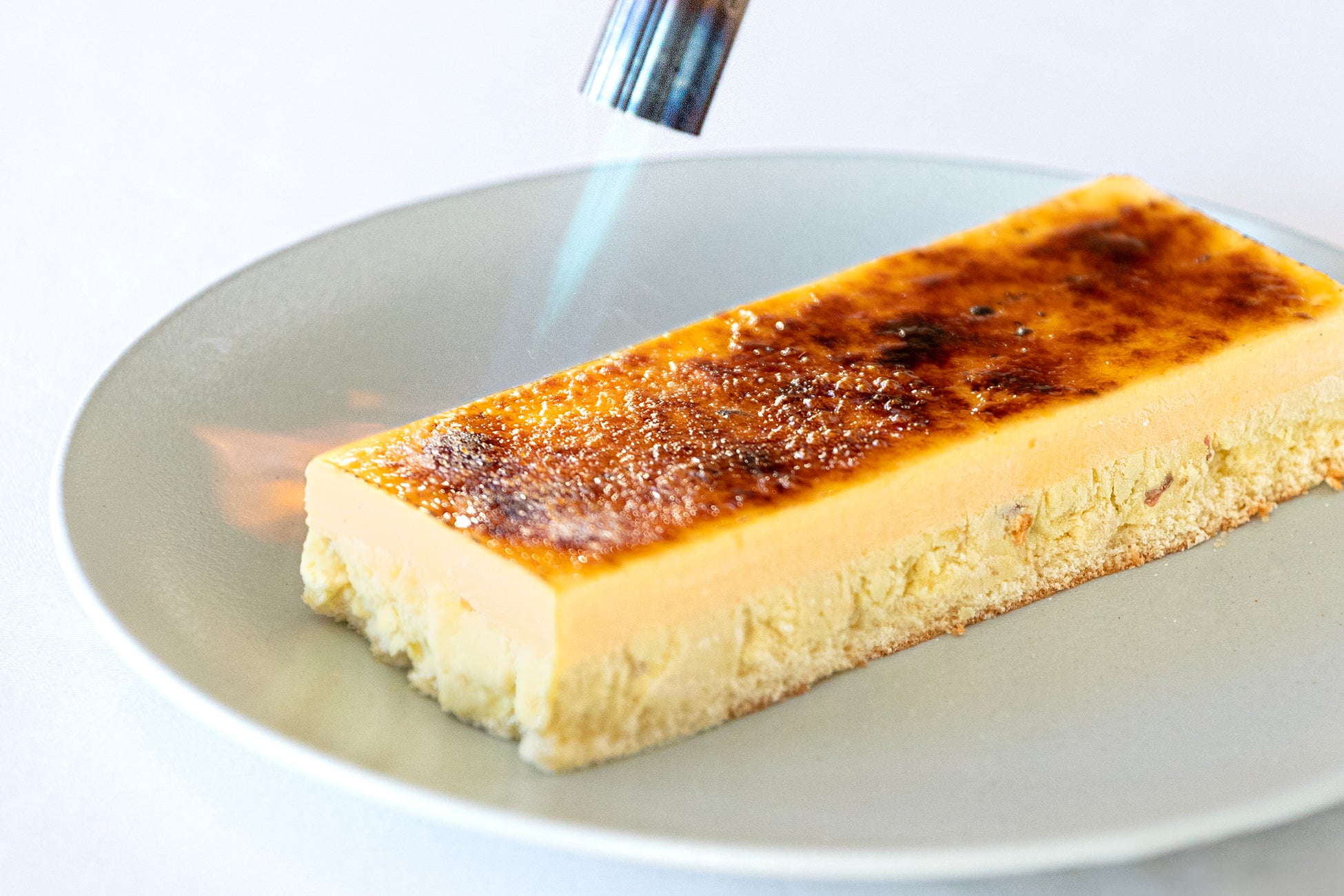 新鮮な静岡県産の鶏卵を使用。卵黄のみを贅沢に使用し、生クリームと合わせ濃厚な味に仕上げました。上のカラメル部分にはさつまいも羊羹の部分で使用するカソナードを使用し、パリッとした食感と甘みの統一感を意識しました。