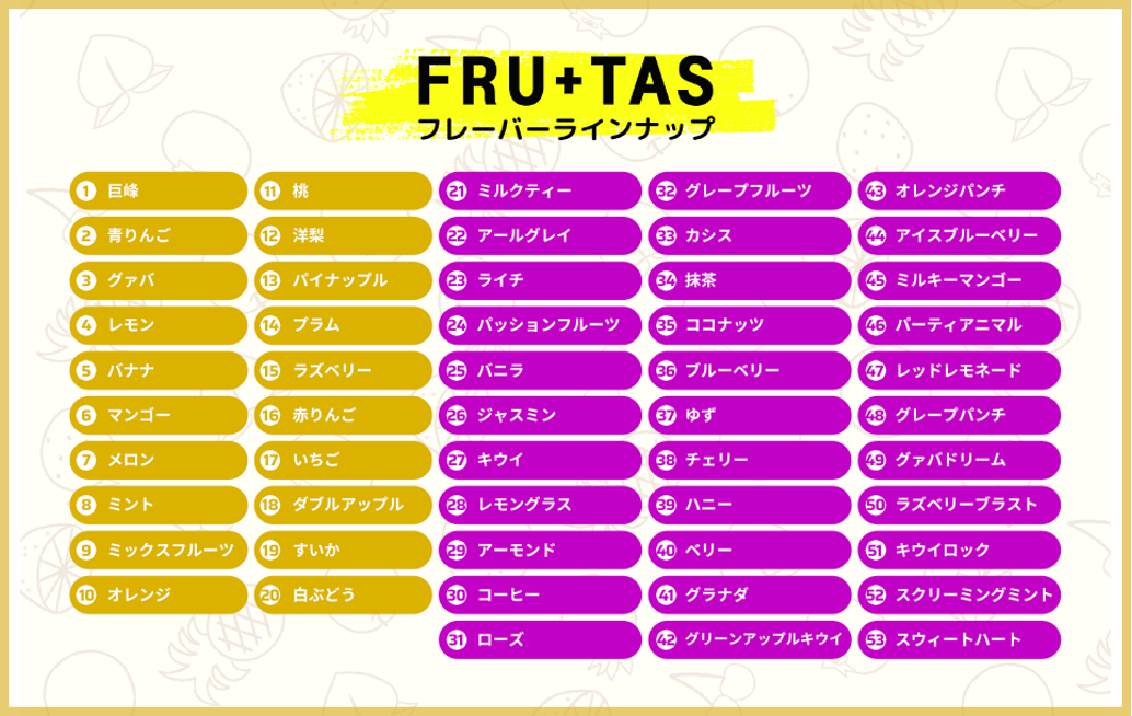 FRU+TAS(フルタス) | 生果実ノンニコチンシーシャフレーバー53種に加え、日本限定JAPONAIS(ジャポネ) 7種類の発売を発表