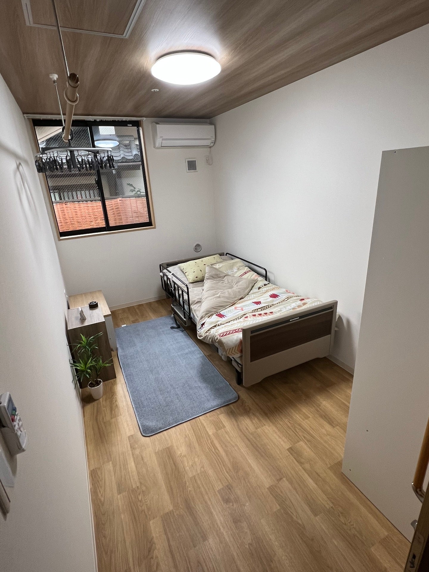 居室設備: 介護用電動ベッド、緊急時コールボタン、室内照明、スプリンクラー等