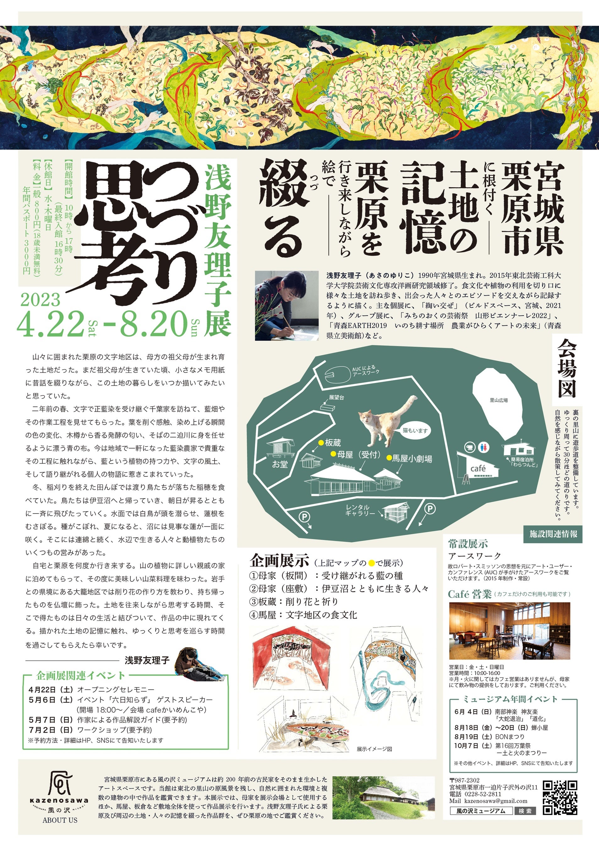 風の沢ミュージアムでは2023年4月22日(土)〜8月20日(日)まで、宮城県多賀城市出身の画家 浅野友理子氏を起用し、2023年度企画展「つづり思考」及び関連イベントを開催します。