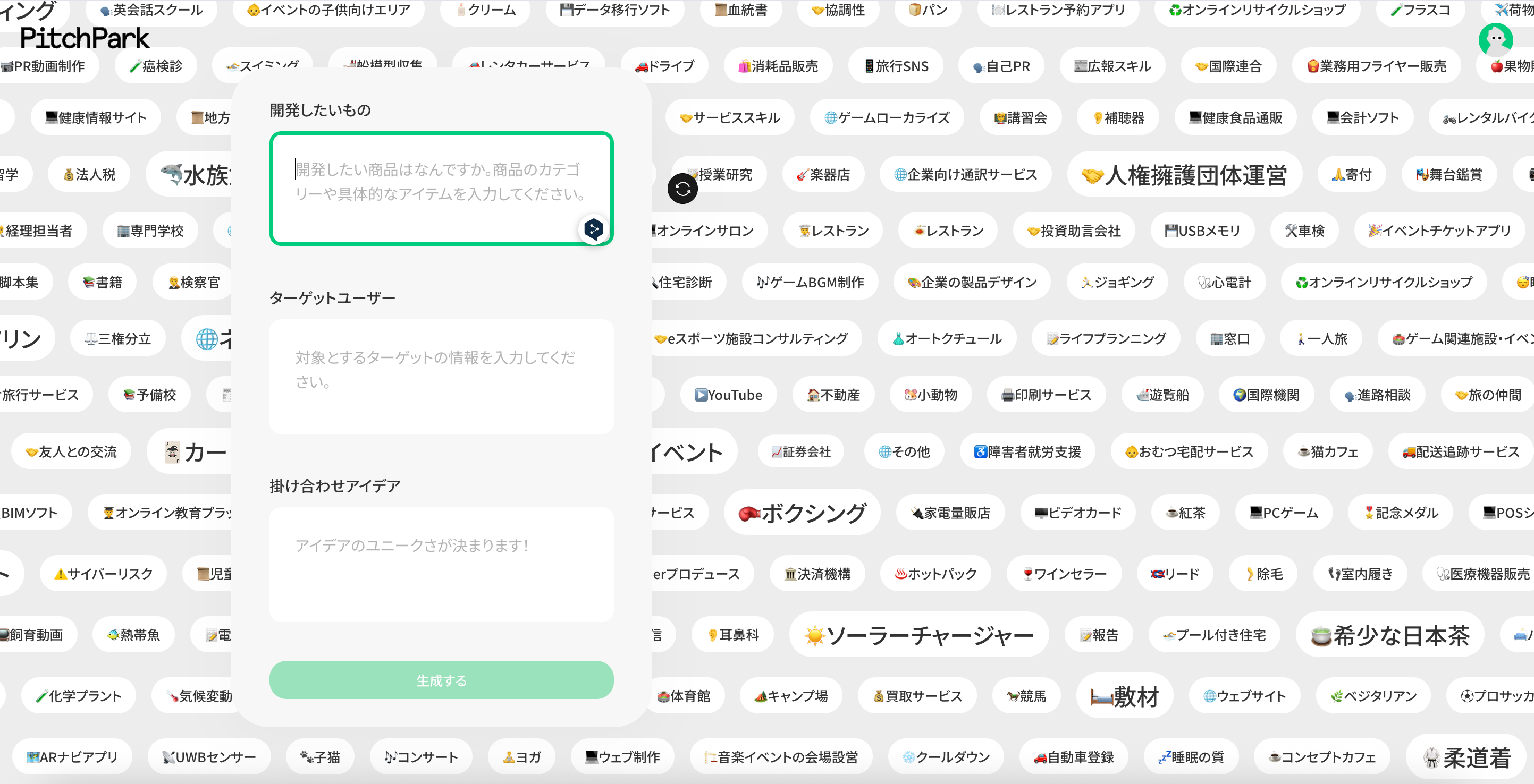 PitchParkは、このように無限にアイデアが生まれ続ける“妄想と創造があつまる広場”です。
