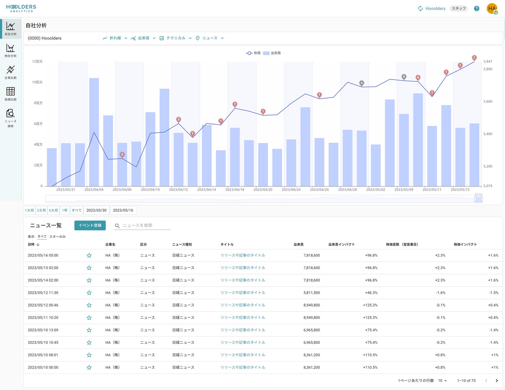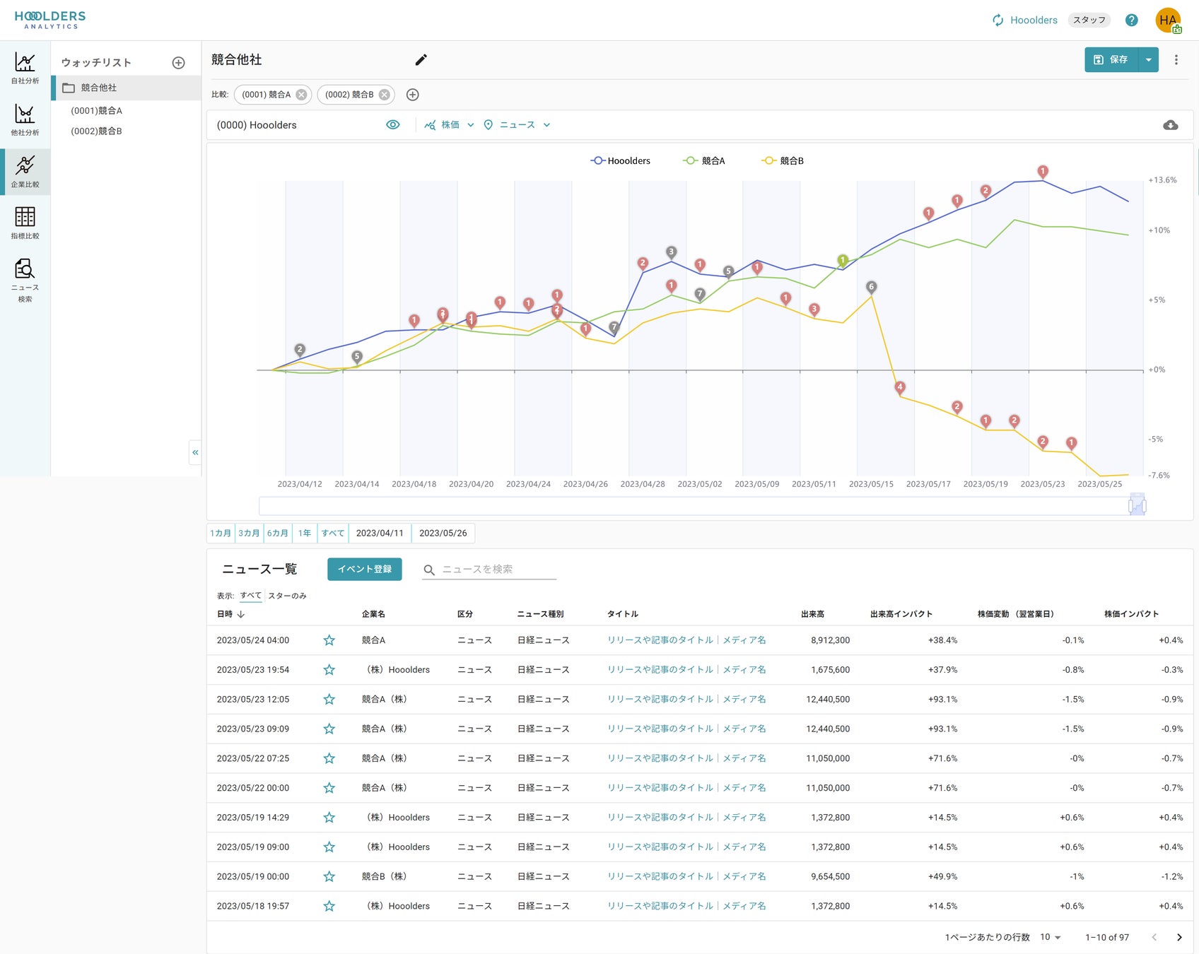株式投資家の動向や競合他社のIR施策の分析をサポート。企業向けIRアナリティクスSaas「Hooolders Analytics」製品版をリリース。