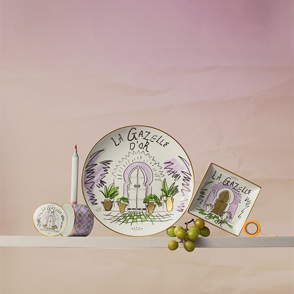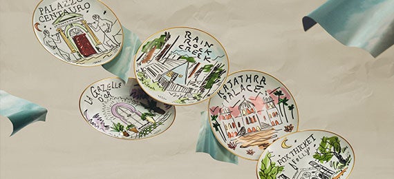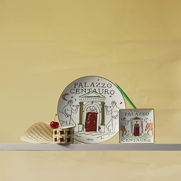 PROFUMI LUCHINOのコレクションは、5つの旅先ごとのフレグランスに、それぞれの架空の館と象徴するモチーフが描かれたアロマキャンドルをはじめ、ラウンドプレート、スクエアトレイ、蓋付のボックスで構成されています。この他、“Luchino’s Souvenires”と呼ぶにふさわしいそれぞれの旅先に関連した、キャンドルスタンドやインセンスホルダー、蓋付キャンドル、カバー付きボックス、そして、ギリシア神話に登場する美しいトロイアの王子「ガニメデス」の頭部を形とった彫刻的なキャンドルホルダーといった個性的なオブジェも展開します。いずれも、ジノリ1735のマエストロ達の技が際立ちます。