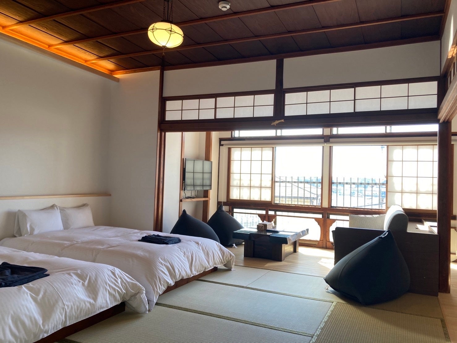 明治・大正・昭和・平成・令和と三崎港の中心で酒屋として営業していた「山田酒店」の二階を宿泊施設としてリノベーションしました。