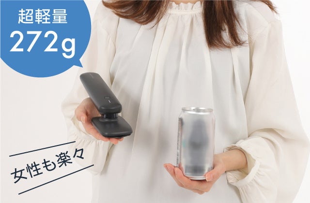缶ビールより軽い272g。三段階の温度設定が可能です。