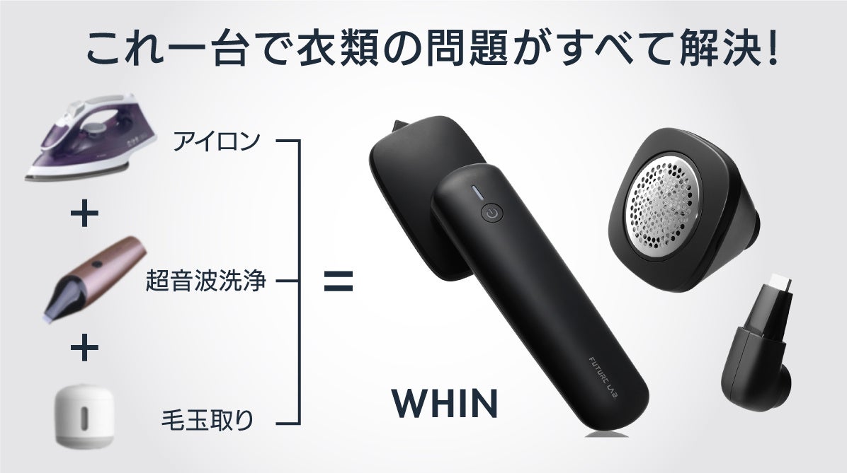 WHINは、そんな忙しい方にお届けしたい「アイロン」「超音波洗浄」「毛玉取り」を備えた新しい衣類ケアガジェットです。
