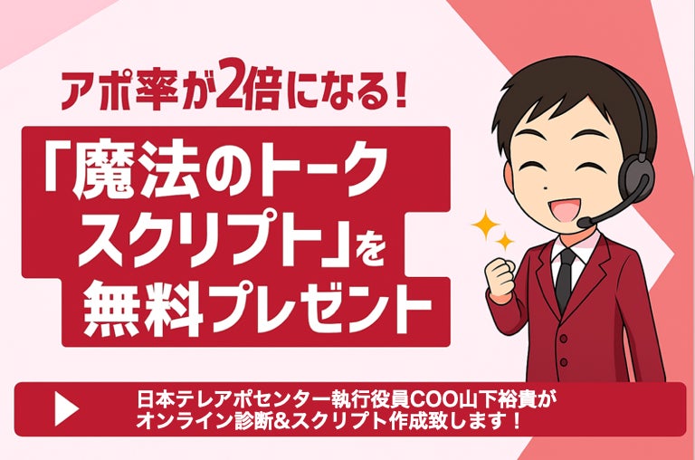 無料のテレアポ診断(オンライン)を実施し、(その場、もしくは終了後に)「アポ率が2倍になる!魔法のトークスクリプト」を無料作成