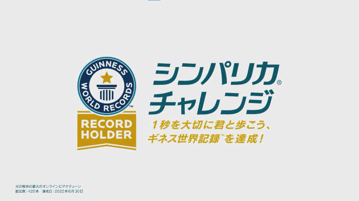 ペットが挑戦するオンライン記録として世界初、“ギネス世界記録™認定”!愛犬との散歩動画をつなげる「シンパリカチャレンジ」8月5日(金)公式サイトにて特別動画公開