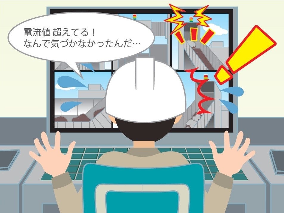 現場で負荷電流を計測し確認していましたが、工場が広いうえにコンベアが多いので、点検・記録作業に非常に手間がかかっていました。