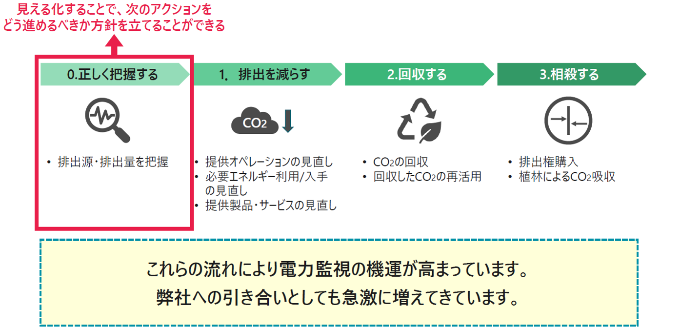 最近、大手企業や親会社の下請けとして部品加工や組立を行っている企業様から、「取引先から温室効果ガス排出量の提出を求められており、設備ごとの電力使用量を監視・測定できるようにしたいがいい方法はないか?」というご相談をいただくことが増えています。