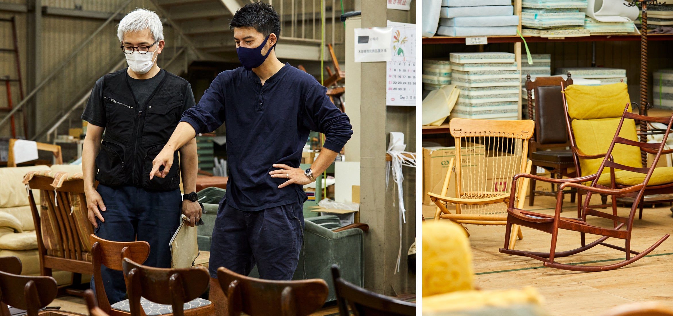 「オールドマルニ」の愛称とともに、以前からそのプロダクトの魅力を感じてくれていた藤井氏は、本企画にあわせて、マルニ木工の家具のリノベーションを担う坂東工場に足を運び、1点1点細部にわたり、職人たちと話し合い仕様を決めてきました。