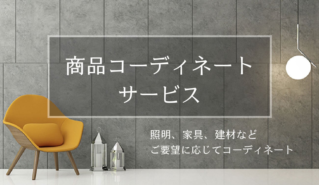 商品コーディネート・サービスは、自分の要望や、好みのデザインなどを伝えれば、全国にいる建築家・コーディネーターにより、照明・家具・建材など自分好みの商品をコーディネートしてくれるサービスです。また、リフォーム・リノベーション会社、工務店などの法人も活用できるサービスです。