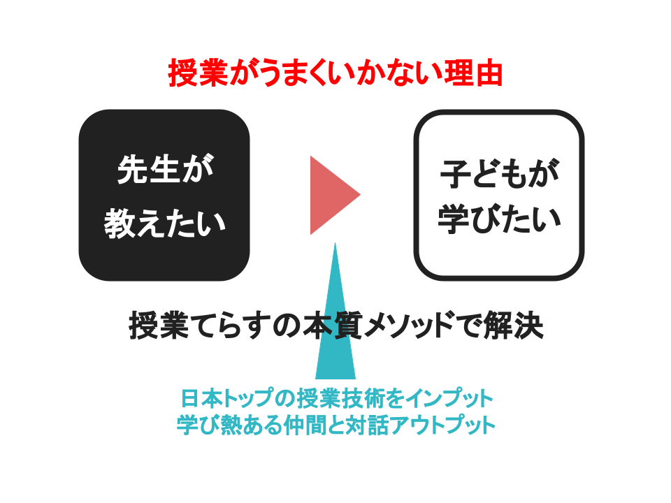 授業力を高め、先生自身が授業を楽しむことで、子どもと先生がHAPPYな教室を全国に増やしたい。また、授業改善は最強の働き方改革ともいわれるように、授業力を高めることでトラブル対応や保護者対応の時間も減ります。さらに、先生が本当に求めている学びの機会をつくることで学校教育に関わるネガティブイメージを好転させ、先生って最高におもしろいというイメージを世の中に発信したいと考えています。