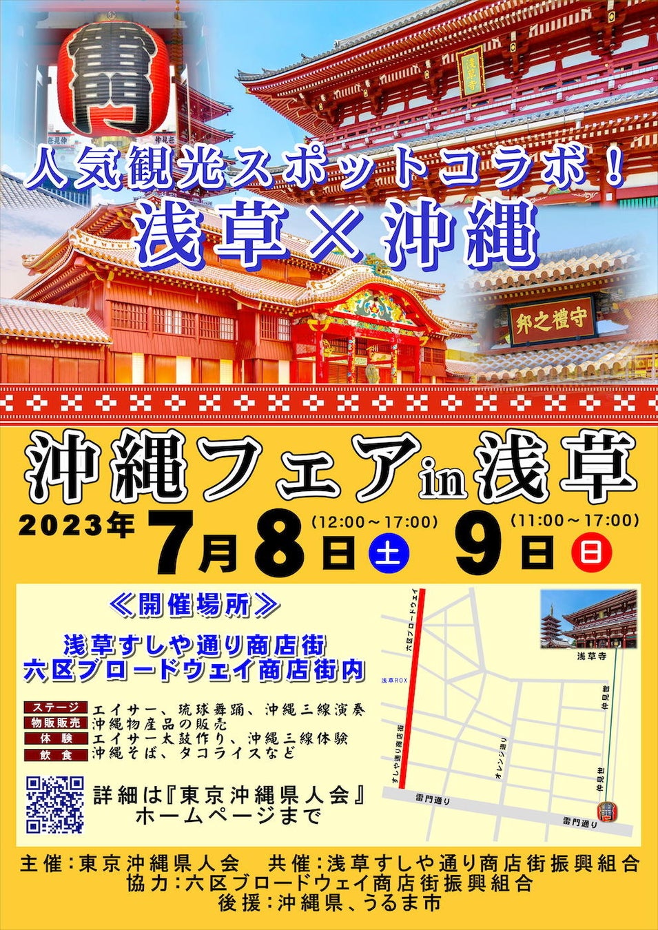 東京沖縄県人会(東京都中央区八重洲 会長 仲松健雄)は、「沖縄フェア in 浅草」を7月8日(土)・9日(日)に開催いたします。