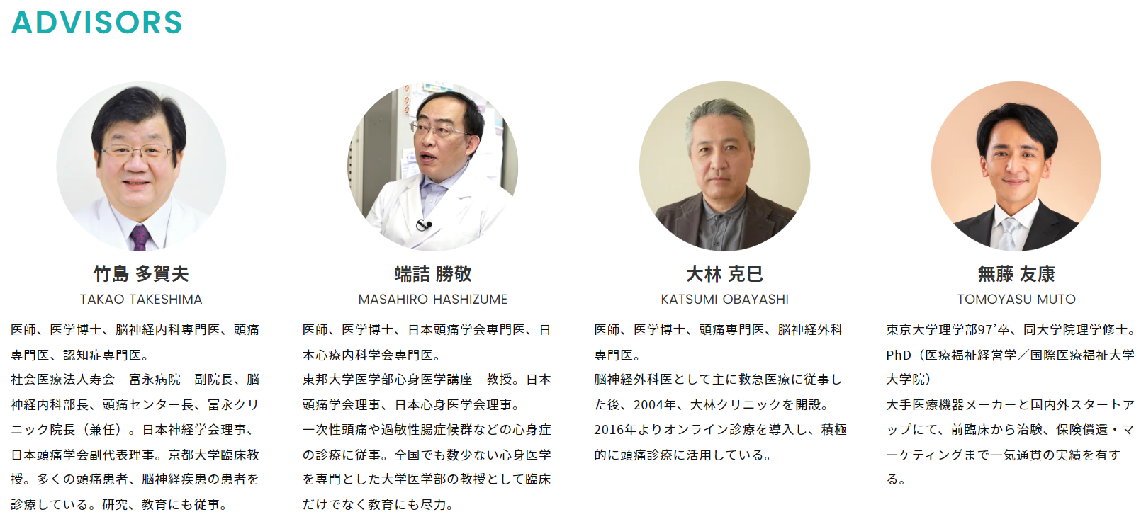 とディスカッションを続ける中で期待が確信に変わりました。日本で1,000万人超が抱える片頭痛のQoLや労働生産性に対する影響は非常に大きく、こうした社会的なアンメットメディカルニーズに対してDTxという新しいアプローチを提示していく経営陣のビジョンに共感し、いち早く投資の意思決定をさせていただきました。実は、投資検討中に気候性頭痛を発症しまして (笑) 、こんな偶然もあるのかと我ながら驚きましたが、いちユーザーとしてもプロダクトローンチを心待ちにしております。