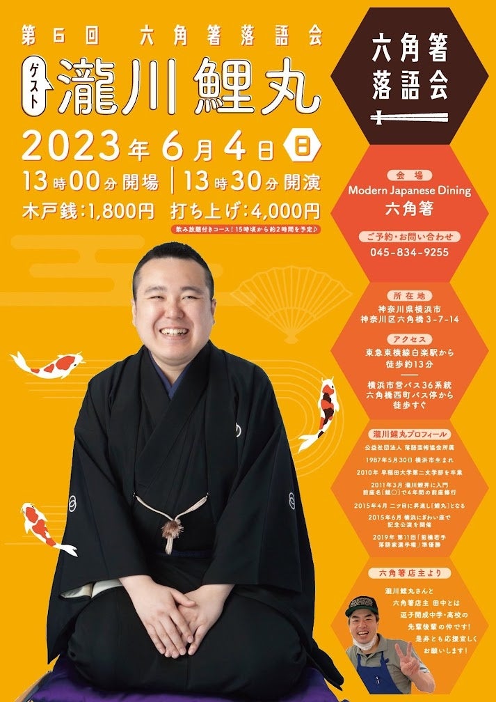 ■「第6回六角箸落語会、「瀧川鯉丸」独演会、2023年6月4日開催決定のお知らせ」