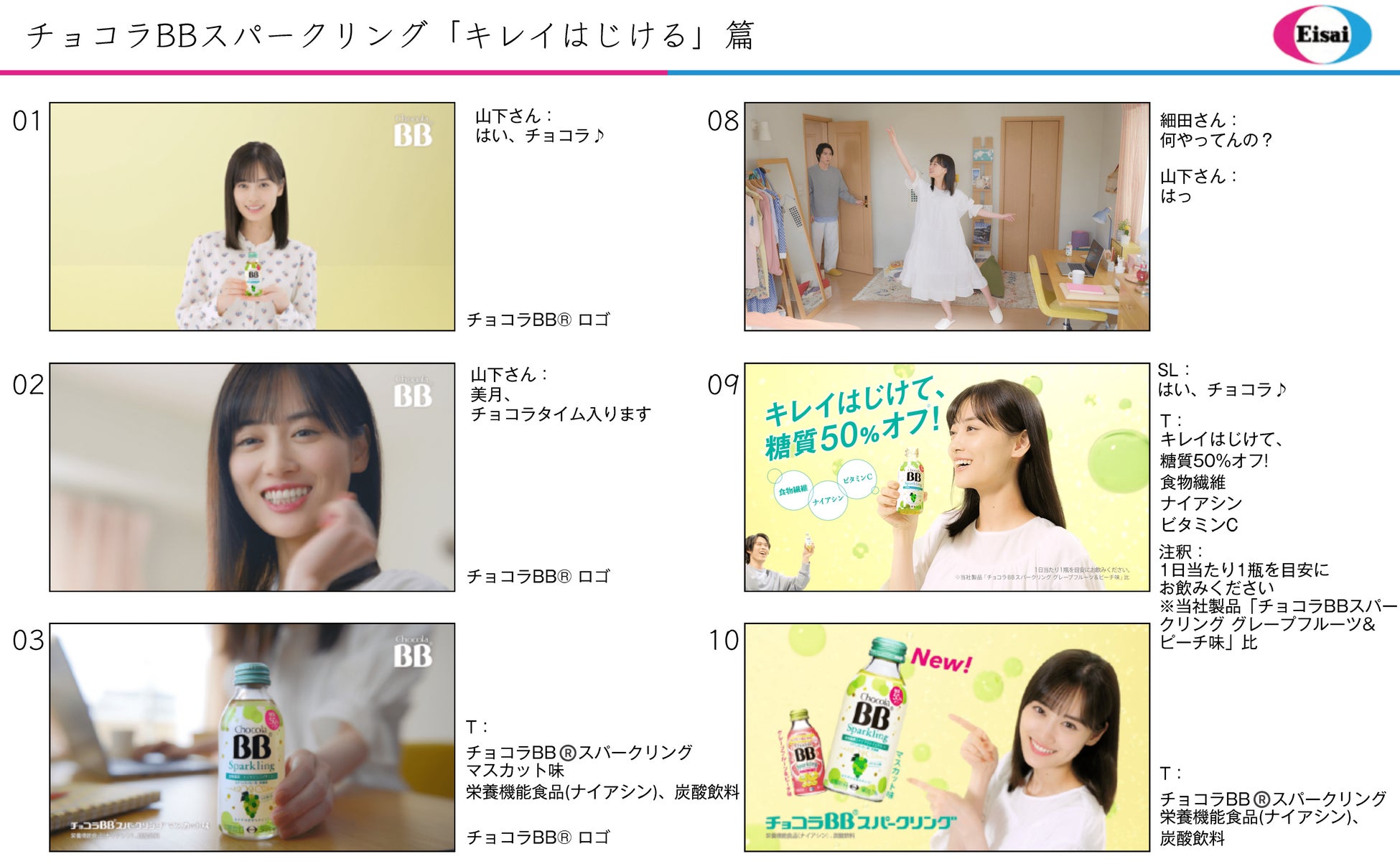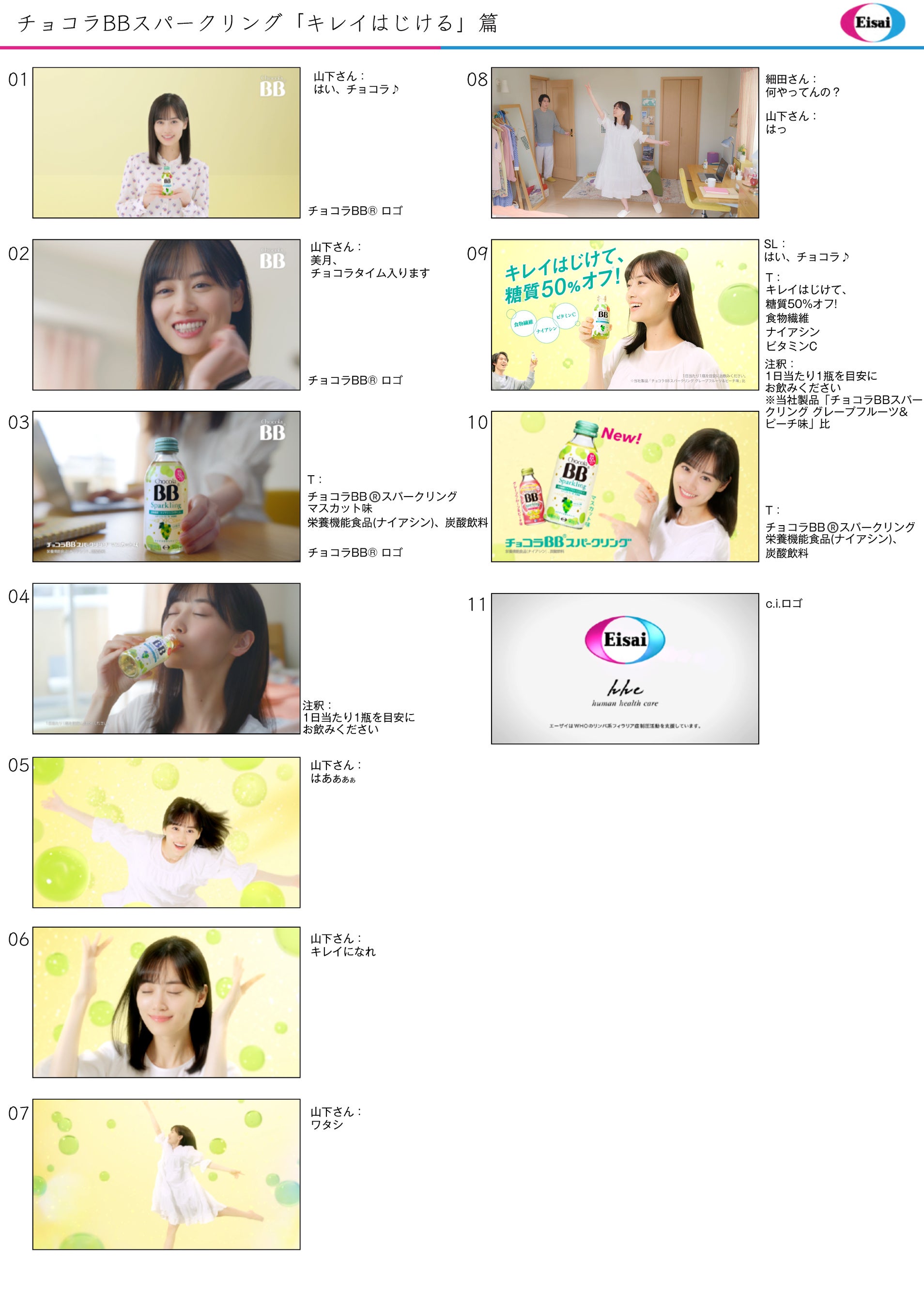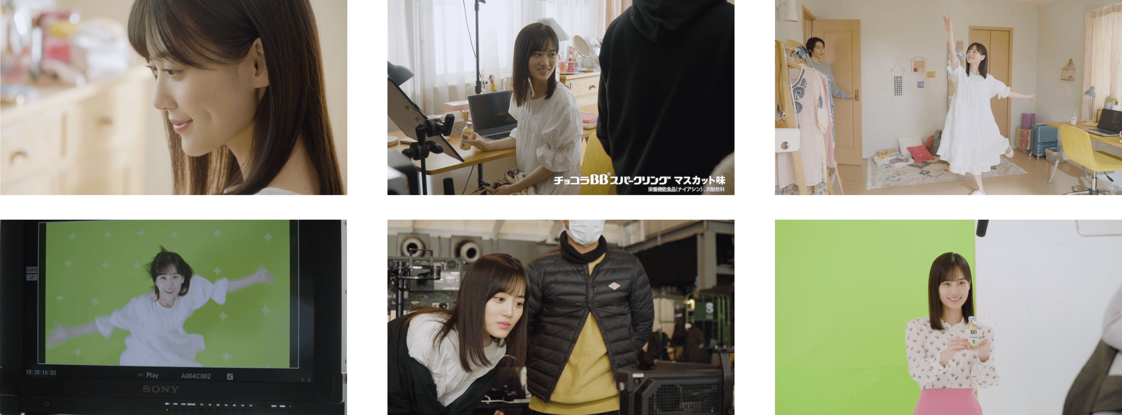山下さん:今回はひとりでの撮影時間が長かったので少し緊張しました。でも、白いワンピースで踊るシーンだったり、スパークリングのはじけるフレッシュさも感じてもらえるように笑顔で楽しく撮影させていただきました。長年愛されているチョコラBBの新製品CMへ出演させていただけることに喜びを感じています。