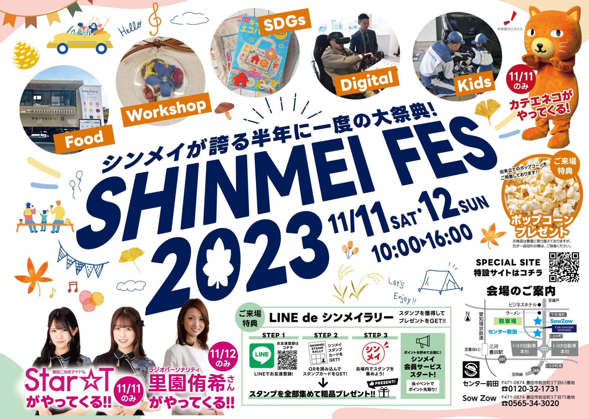 新明工業株式会社(本社所在地:愛知県豊田市衣ケ原)のセンター前田と未来型ショールーム『SowZow(ソウゾウ)』の両エリアで、日頃のお客様からのご愛顧に対する感謝の気持ちを込め、11/11(土)・12(日)に「SHINMEI◇FES2023」を開催させていただきます。
