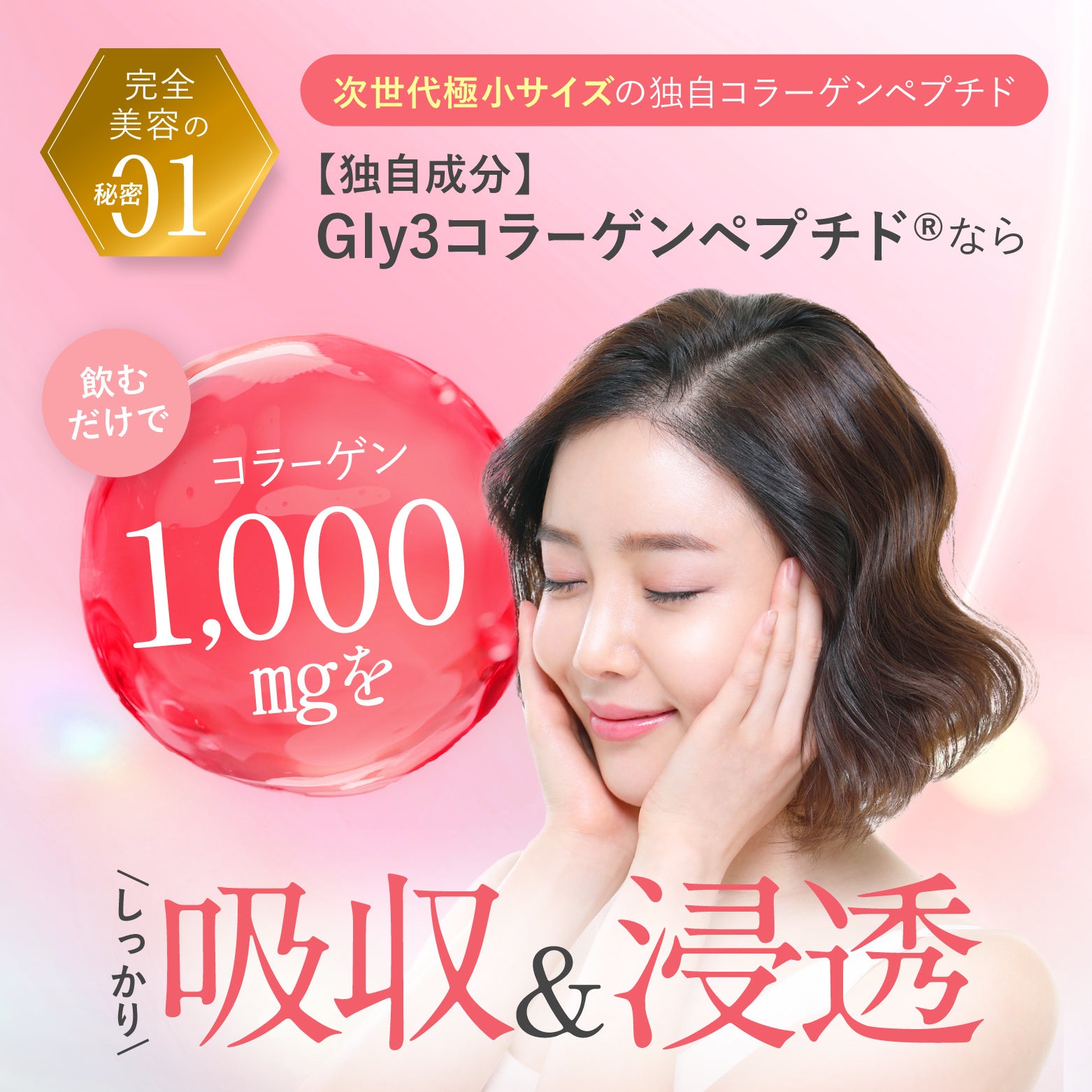 ①次世代極小サイズの独自コラーゲンペプチド「Gly3コラーゲンペプチド」を1杯で1000mg配合!