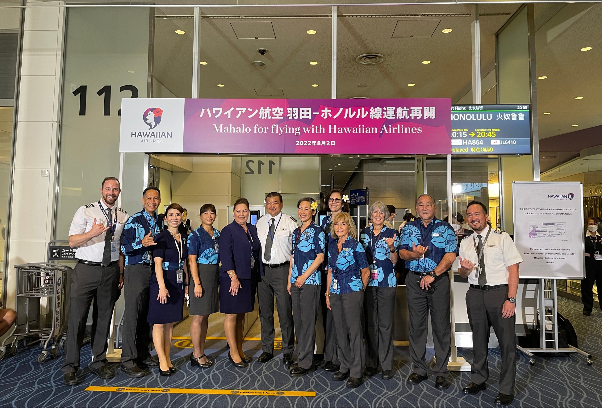 ハワイアン航空(本社:ホノルル、代表取締役社長兼CEO: ピーター・イングラム[Peter Ingram])は、東京国際空港(以下、羽田)とダニエル・K・イノウエ国際空港(以下、ホノルル)間の定期直行便を、8月1日(ハワイ現地発)より毎日運航(週7便)で再開しました。また、8月2日には、羽田発の初便出発前搭乗ゲートにて式典が行われました。