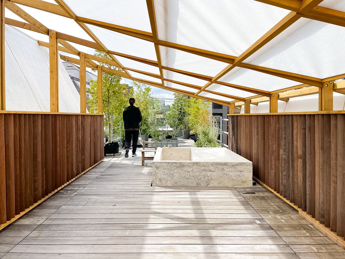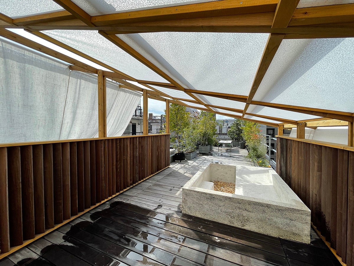 さらに客室は屋上テラスへと繋がっており、階段を登ると東京のランドマーク、スカイツリーが目に飛び込んできます。