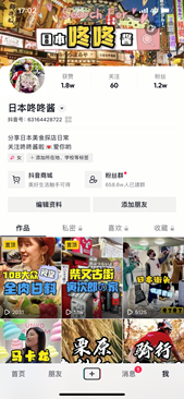そこで、クレソン株式会社では、既存動画を中国人が好む動画へ編集し、それを中国版TikToK抖音(douyin)にて自社アカウントで運用を開始しました。それが抖音における日本咚咚酱と日本漫游酱と言うアカウントです。