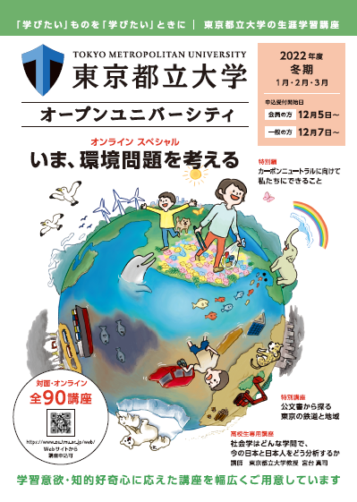 東京都立大学オープンユニバーシティ2022年度冬期講座のご案内(好評のオンラインスペシャル講座では「環境問題」、本学教授陣による高校生向け無料講座など。その他多数開講)