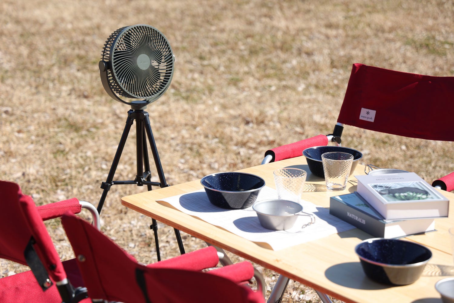 夏場の送風はもちろん、暖かい空気をテント内に循環させるファンとして、暖房器具との併用で冬キャンプでの使用にも最適なのでオールシーズンの活躍が期待できます。
