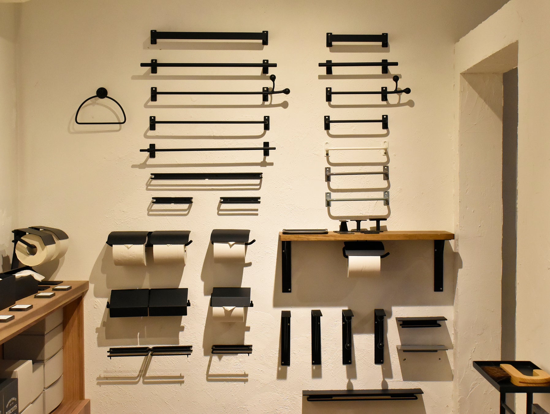 コーヒードリッパースタンドやオブジェ、オンラインショップでの人気も高いペーパーホルダーやタオルバー、傘立てなどの小さな家具も充実しています。