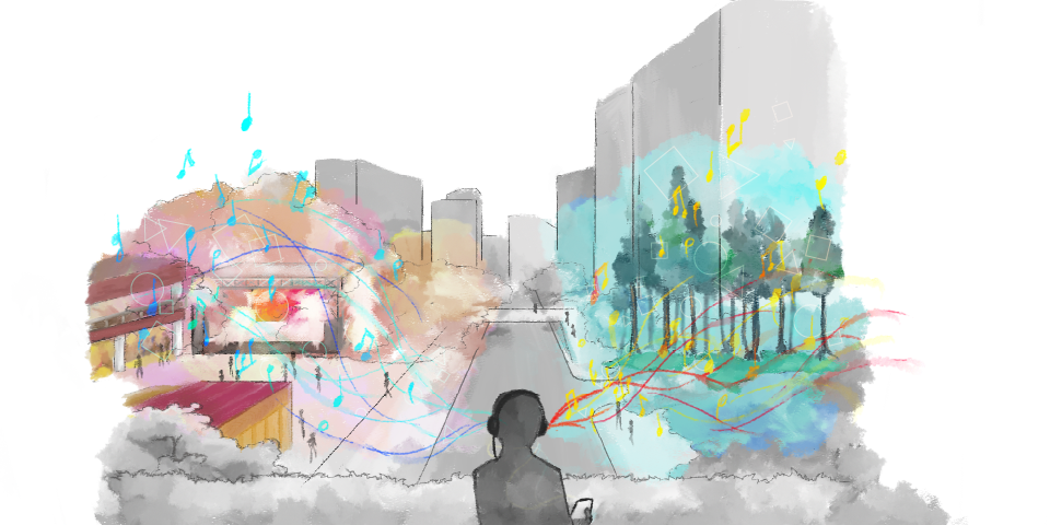 本企画では3D空間音響、バイノーラル再生、音響心理学などを駆使し、さらにGPSやAI、センサー等と組み合わせたXR展示をご覧いただけます。それは、従来のように、完成された音楽を一方的に受け取る聴取体験とは全く異なるものです。5Gによって実現される、聴取者の関与によって内容が変わる「双方向的な音の体験」をお楽しみください。体験者の皆様一人一人が、未来社会のビジョンを描く契機となることを目指します。