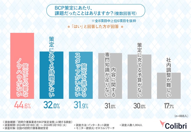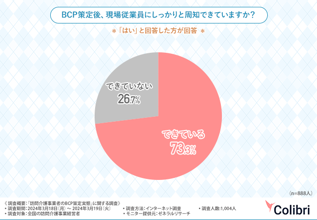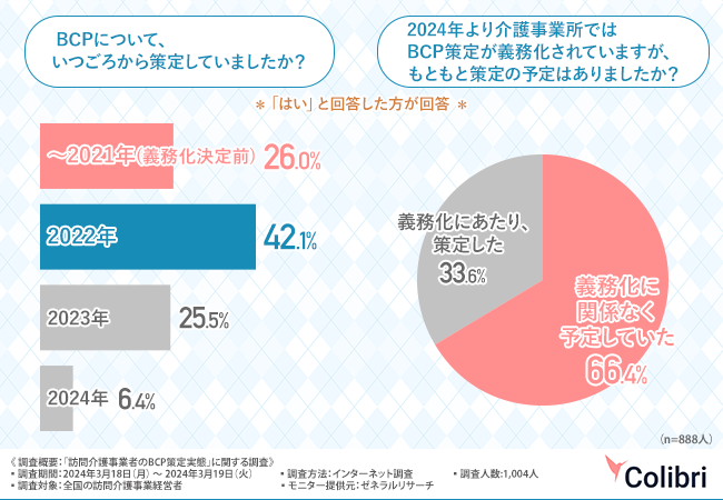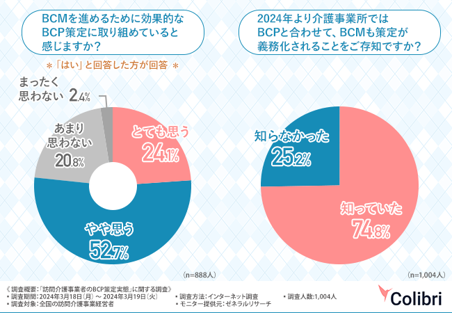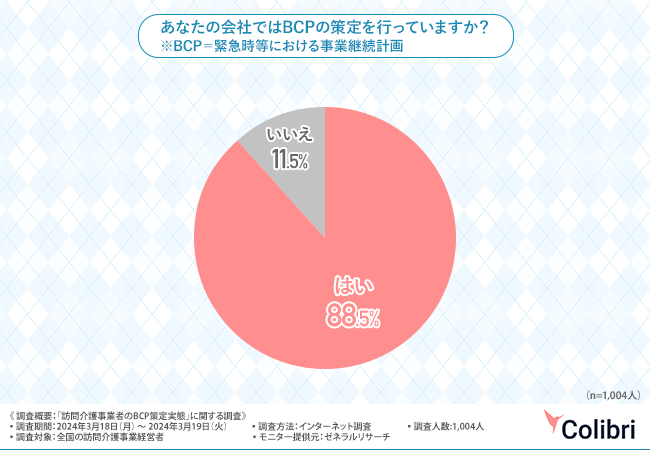 を手掛けるColibri合同会社は、全国の訪問介護事業経営者を対象に、「訪問介護事業者のBCP策定実態」に関する調査を実施しました。