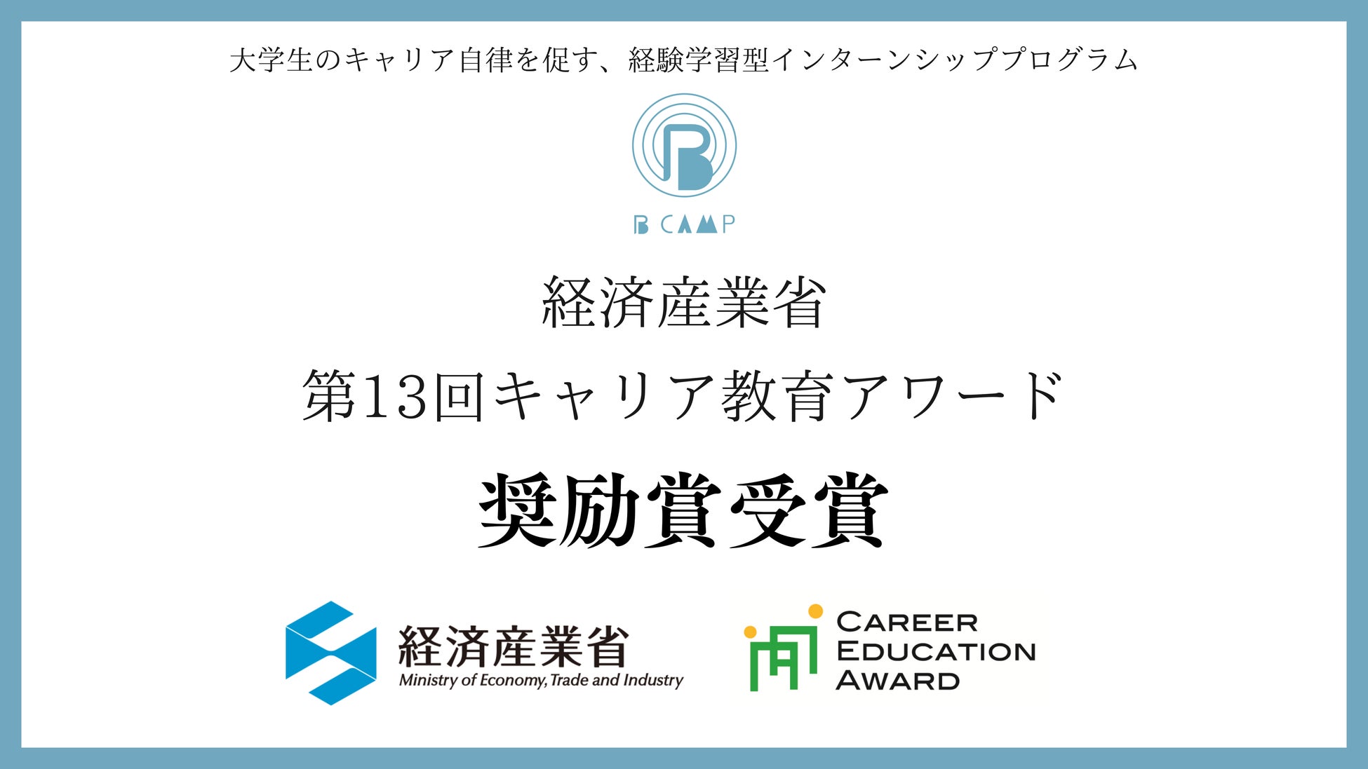 ブランディングポートで取り組む経験学習型インターンシップ「B-CAMP(ビーキャンプ)」の活動が、産業界による優れたキャリア教育の取組として経済産業省より高く評価され、受賞に至りました。
